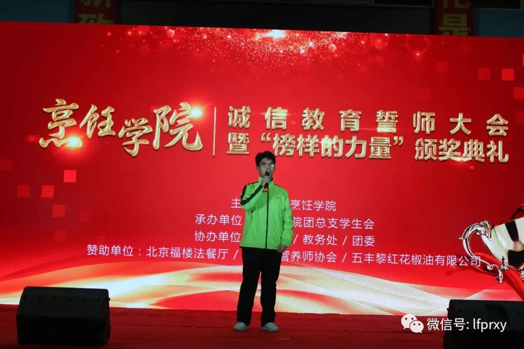 烹饪学院诚信教育誓师大会圆满落下帷幕,“榜样的力量”颁奖典礼拉开帷幕。
