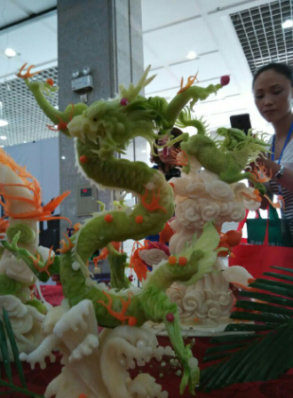 竞赛现场,我院学生进行了雕刻、刀功、盲雕、盲切、盘画等烹饪技能展示,同学们过硬的烹饪技能受到在场观众及领导的一致好评。通过参加社会实践活动,不仅提高了学生们的专业技能,同时也扩大了我院的社会知名度和影响力。