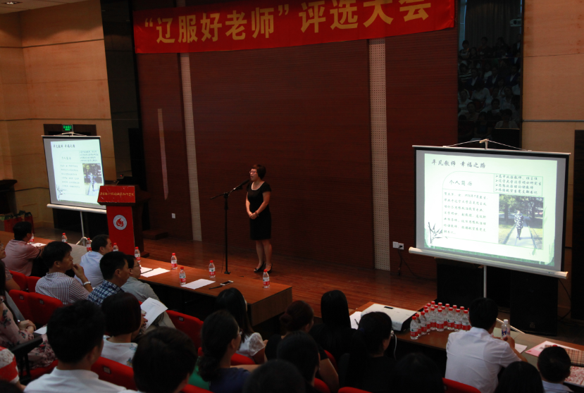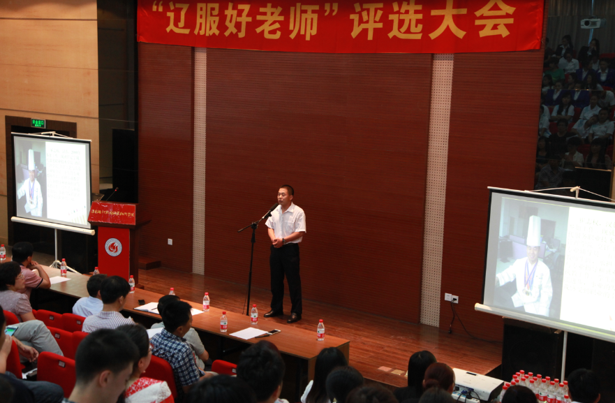 习近平在同北京师范大学师生代表进行座谈时强调,一个人遇到好老师是人生的幸运,一个学校拥有好老师是学校的光荣,一个民族源源不断涌现出一批又一批好老师则是民族的希望。对于好老师的标准,习近平总书记提到:“做好老师,要有理想信念,要有道德情操,要有扎实学识,要有仁爱之心。”旅游航空系推选的候选人贺立萍老师在她的竞选事迹中提到,从教多年,一直严格按照好老师的“四有”标准严格要求自己并为之不断努力。来自酒店管理学院的崔志权老师和鄢成富老师,语言质朴,情感真挚,他们向大家展示了踏踏实实工作、勤勤恳恳奉献的好老师的良好形象。而来自公共教育部外语教研室的候选人成功老师,投身于大学英语四级的教学改革一线,身体力行地践行什么是“辽服好老师”。附属中专部的候选人刘致凤老师用张弛有度的艺术化管理手段,得到了老师和学生们的一致认可……“印度诗人泰戈尔说过:“花的事业是甜蜜的,果的事业是珍贵的,让我干叶的事业吧,因为叶总是谦逊地垂着她的绿荫的。”18名候选人的甘做绿叶、无私奉献的先进事迹不时引起现场的阵阵掌声。