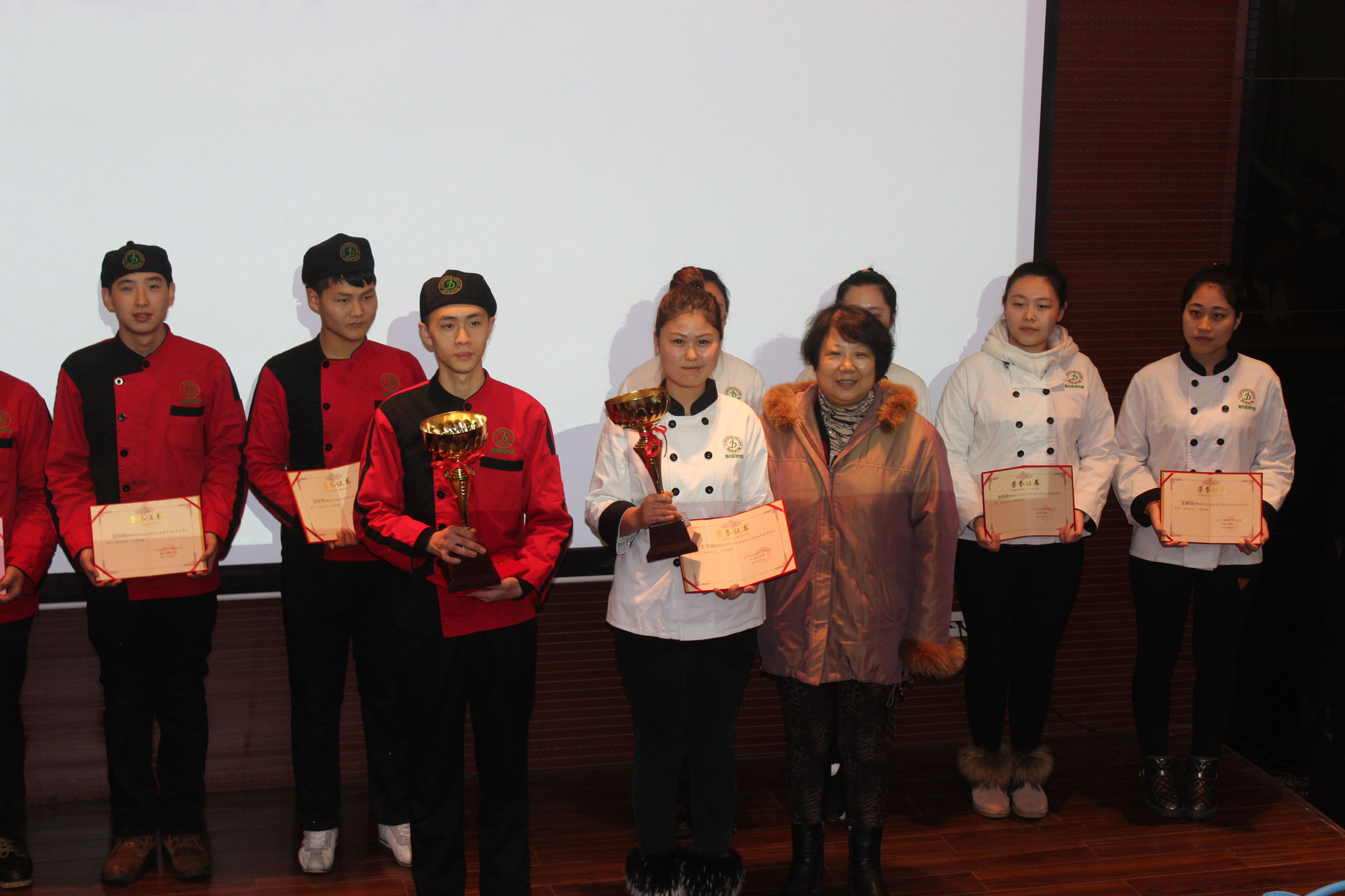 为检验烹饪专业教学质量,发现并挖掘优秀烹饪人才,提高烹饪专业教学水平,激发学生学习专业的热情,酒店管理学院举办首届烹饪技能竞赛。参加比赛的共有12个队,分别于12月3日和12月9日进行排名赛和对抗赛。最终评比出总冠军两个队,二等奖两个队,三等奖两个队。常毓兵、谢文涛、韩冬三位专业老师分别被评为优秀指导教师。