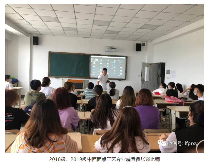 2018级、2019级中西面点工艺专业辅导员张焱老师着重表示:“同学们要做好疫情防控期间的各项准备,不管是在教室内还是在寝室内都要注意卫生安全隐患,严格遵守校规校纪,为学院的疫情防控工作打下良好的基础”。