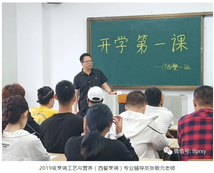 2018级烹调工艺与营养(中餐烹调)专业辅导员李贺老师表示:“同学们要充分发挥出学生自觉学习的能动性,提高学习效率,在不断的学习中发现、研究和创新。希望同学们在新学期里可以有新的收获”。