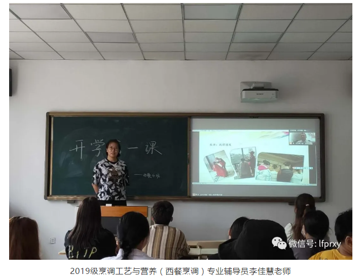 为保证新学期疫情防控期间学院工作的正常开展,在学院党委的统一部署下,烹饪学院认真贯彻相关指示精神,培育和践行社会主义核心价值观,用抗疫精神深入开展爱国主义教育,普及防疫知识,弘扬抗疫精神。烹饪学院在开学的第一周,全体辅导员齐上“开学第一课”。召开了以“开学第一课”为主题班会活动。