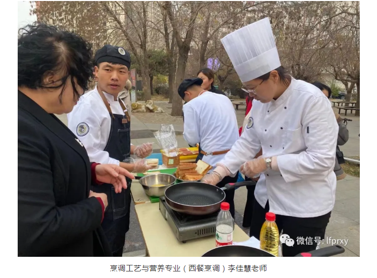 为全面贯彻党的十九大精神,进一步营造全社会关心支持职业教育,营造良好氛围,主动适应经济发展新常态,宣传展示职业教育助力新冠肺炎疫情防控、支持复工复产、促进就业创业等方面的成效,大力弘扬“劳动光荣、技能宝贵、创造伟大”的时代风尚,落实学院《关于2020年“职业教育活动周”实施方案征集的通知》文件精神。烹饪学院于11月12日来到汇宝社区开展以“人人出彩,技能强国”为主题的社会实践活动。