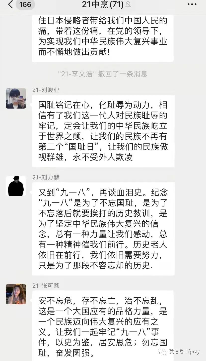 在学习思政大课的基础上,师生在微信群、班级教室里纷纷发表观看感悟,抒发爱国之情、报国之志…烹饪学院党总书记毛景海表示:“‘九一八’事变是抗战的开端,也是伟大抗战精神形成的起点,我们每位师生要将爱国情怀、民族气节、英雄气概、必胜信念世代传承、不断弘扬光大,铸就新时代抗战精神,充分发挥烹饪学院师生的凝聚力和战斗力,为民族复兴贡献力量”。烹饪学院教师和党务工作者们建议,要深入挖掘此次思政大课的教育价值,结合日常教育教学、结合党史学习教育,充分利用本地红色资源和网络红色资源,探索立体式思政课、党课,持续推进课程思政项目,不断提高师生思想政治觉悟,践行初心使命。