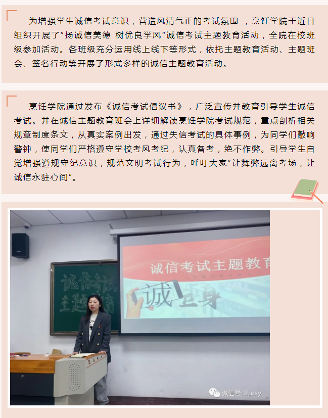烹饪·教育|烹饪学院开展“扬诚信美德 树优良学风”诚信考试主题教育活动