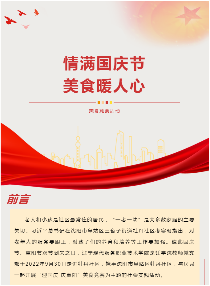 学院新闻|迎国庆,庆重阳,美食竞赛活动 ——烹饪学院教师党支部走进沈阳市牡丹社区