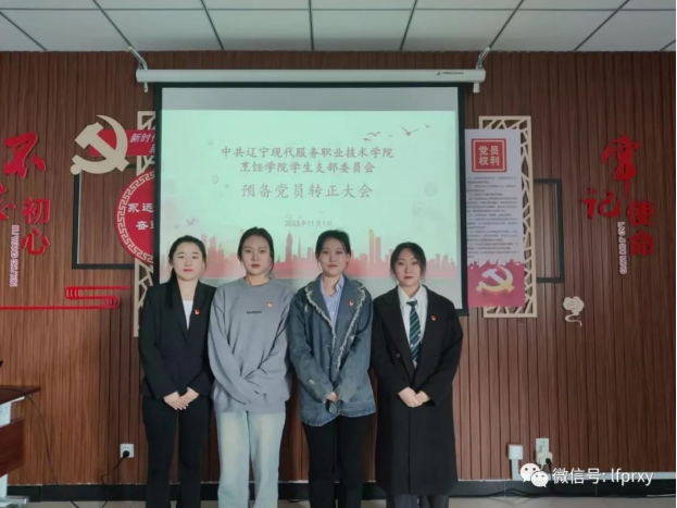 会上,预备党员苑琦琦、姜欣雪、教月林、侯桠枝分别按照转正程序有序开展工作,所有预备党员以全票通过的方式成为正式党员,本次转正大会圆满成功。四位同学表示在今后会不断提高自己的思想水平、党性修养、学习能力与工作效率,并努力改正自身不足之处,时刻牢记入党动机,以实际行动践行入党初心使命。修丽娟书记对本次会议内容进行了总结,对各位同志的学习态度和精神给予了肯定,希望全体党员继续发挥先锋模范作用,以身作则,发光发热,为党和中华民族伟大复兴的事业做出更多更大的贡献。